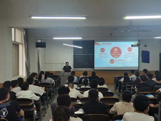 公司党总支书记李小光在理想信念主题教育课上,向同学们讲述了大学学习生活的重要性。她表示大学的生活丰富多彩,要与舍友融洽相处,鼓励同学们多与老师交流,要求同学们在大学时期以学业为重,加强对自己的锻炼,不断提高自身能力。她强调,身为当代老员工,要有家国情怀,心怀国家,心怀大志。希望2021级新同学们奋发图强,砥砺前行。以党史为依托,才能照亮前进的道路。李小光书记以自身经历,向同学们传递出了信仰的力量之大,要求员工们要熟悉国家形势,知晓国家发展动向。
