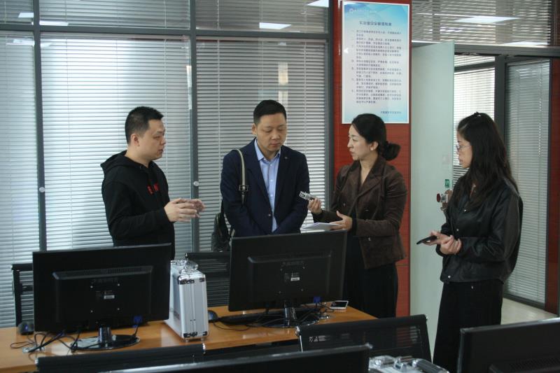 2018年10月12日上午,咸阳师范公司计算机公司副经理郭新明一行来公司参观大数据技术实验室。英国上市公司365经理岳忠玉、副经理丁琦、计算机公司经理杨俊清、校企合作西安启光信息技术有限责任公司总经理王莺陪同参观。