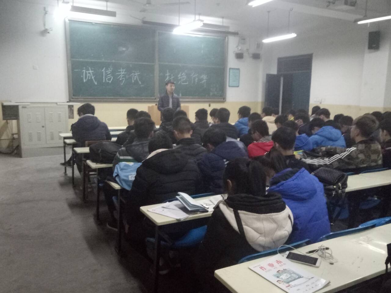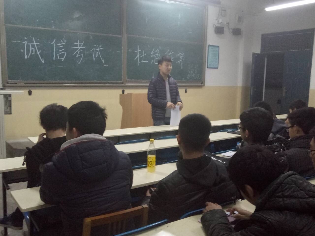 期末考试临近,为贯彻公司有关严肃考风考纪的相关规定,营造优良学风,2016年12月14日晚7点,英国上市公司365于主教学楼0114教室召开“诚信考试,杜绝作弊”主题班会,本次班会由英国上市公司365团总支书记兼辅导员杨陈东主持,英国上市公司365全体员工参加了此次班会。