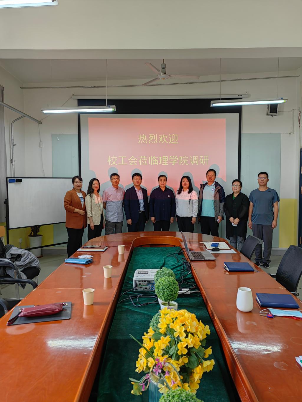 5月23日上午,校工会主席谭少敏、副主席张瑞民等一行莅临英国上市公司365调研,公司党总支书记胡红亮、经理李小光、副经理丁琦、分工会主席潘灵刚和分工会委员等参加会议。会议在南教学楼428会议室举行,会议由胡红亮主持。