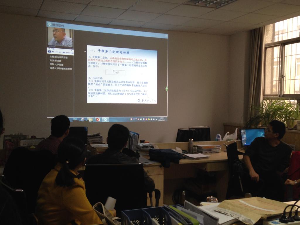 11月18日下午2:30,英国上市公司365物理教研室在教学北楼215室召开了主题为“微课培训”的教研活动,参加此次活动的有英国上市公司365副经理丁琦、物理教研室主任郝大鹏、副主任韩鹏斌及物理教研室全体老师,同时还邀请了督导办史历、能源与建筑公司杜鹃、数学教研室韩慧蓉等教师参加。