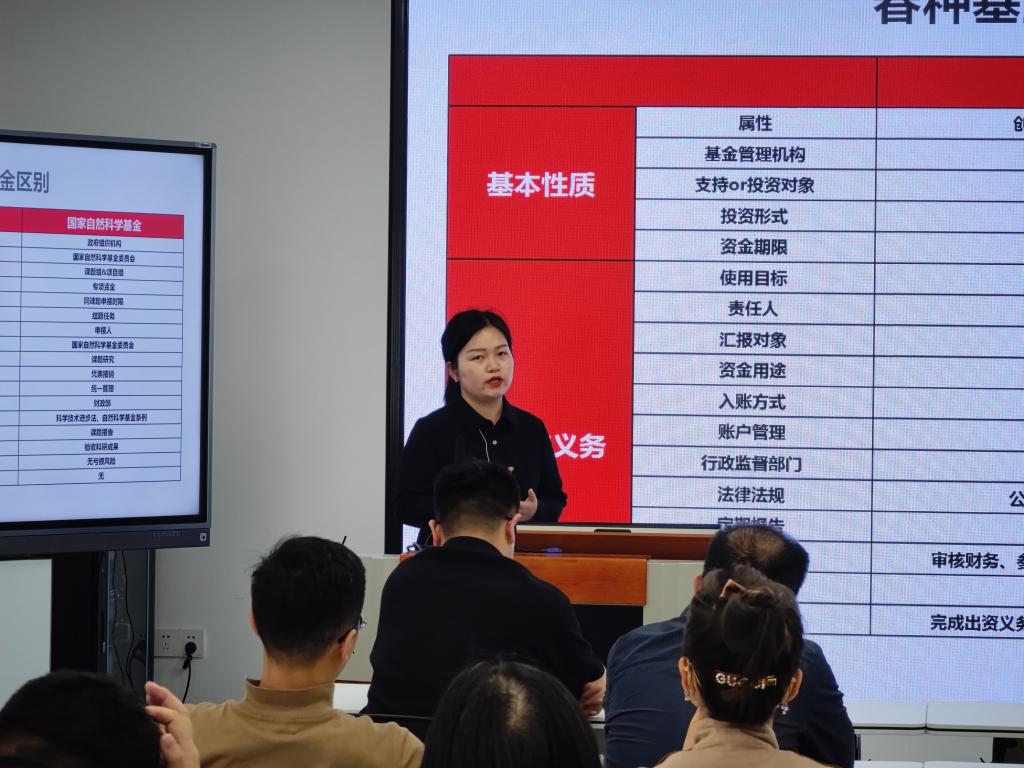 秦创原春种基金经理郑玥首先从春种基金的五大投资方向、项目筛选标准、投资流程和申报流程等方面对基金作了详细介绍。她指出秦创原春种基金定位种子基金,按照“扶持转化”的思路原则,由政府全资设立,全部以股权投资形式参与高等院校师生及科研院所研究人员落户在秦创原总窗口内的技术创新链前端环节科技成果转化项目,解决项目缺乏初始资金投入问题,推动项目完成从创意阶段向具体产品的转化。同时也希望公司教师能充分利用自己的相关科研成果借助秦创原平台积极申报春种基金。