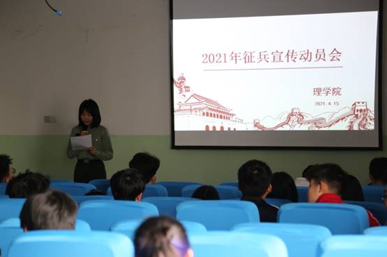 2021年4月15日星期四下午五点,英国上市公司365在北楼441报告厅举办主题为“优秀青年立志从军,热血男儿精诚报国”的2021年征兵宣传动员会。公司员工管理科科长李扬、辅导员张岩、大三全体员工和有意向参军入伍的同学参加了会议,会议由张岩主持。