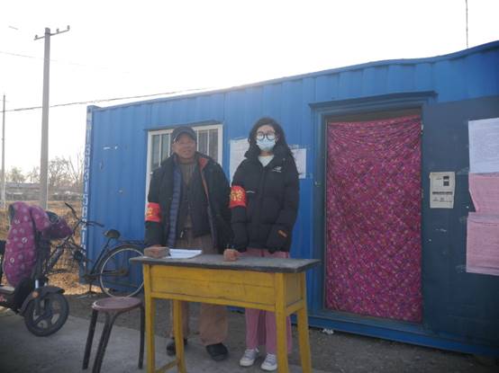 工作内容:负责村口人员及车辆进出的测温统计,以及记录非本村人员的信息。走访了解非本地村民就地过年的情况。