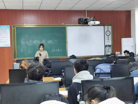 首先,各班团支书向同学们播放关于中国共产党党史的视频,同学们通过视频回顾了中国共产党从建立到发展的曲折过程,了解革命先烈的奉献精神、抗争精神以及强烈的爱国主义精神。随后,团支书向同学们分别介绍了新中国发展史、改革开放史、社会主义发展史,让同学们更深入、更具体地学习关于“四史”的知识。最后,团支书邀请大家谈谈自己的学习心得。
