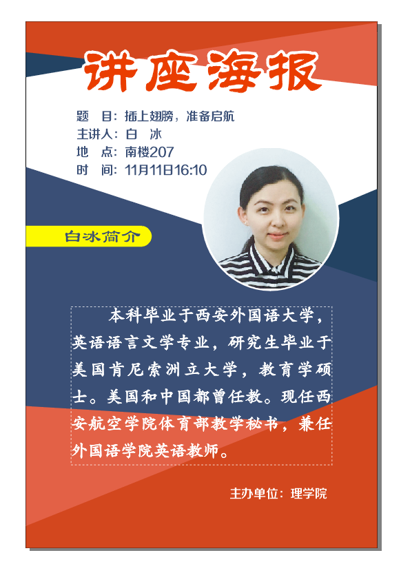白冰老师本科毕业于西安外国语大学,英语语言文学专业,研究生毕业于美国肯尼索洲立大学,教育学硕士。美国和中国都曾任教。现任英国365公司官网体育部教学秘书,外国语公司英语教师。首先,白老师从学习环境、学习材料两个大方面开始讲述英语的学习方法。老师以自己为例,向同学们分享在国外的学习经历。老师强调我们想要学好英语就要自己创造口语表达的条件,也得通过听说读写,本科生听力是弱项,须勤加练习。老师也向大家讲了写作的方法,比如要背诵一些文章,积累模板,学习范文的开头结尾。讲座最后老师简单分析了四级考试的结构,并让大家现在注意以下五点:有针对性的练习、有错题本、提早准备、单词是基础、模拟练习。白老师总结,只要大家从现在就开始努力学习,好好积累,就会有成绩。