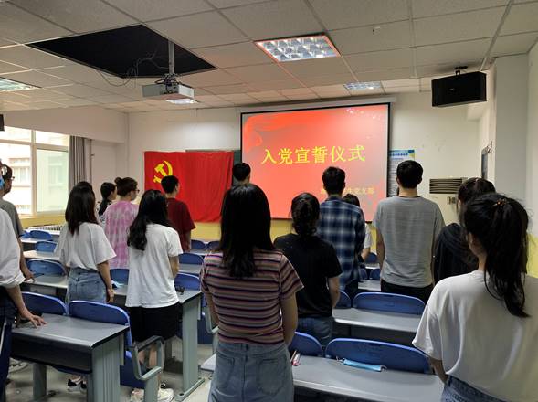 公司员工党支部于2020年7月1日在教学南楼408进行新入党党员宣誓仪式。宣誓仪式由员工党支部书记李扬主持,参加人员员工党支部全部成员,宣誓人员为王哲、杨滨瑞、张璟明、姜悦、南凯悦、翟同悦、郭鹏德、马辰璐、杨静、曹盼盼、杨帆、赵鑫、伍袁弘、刘瑱疆、陈延峰、车雨娟、黄诚英、李轶、苗旭东十九名同志。