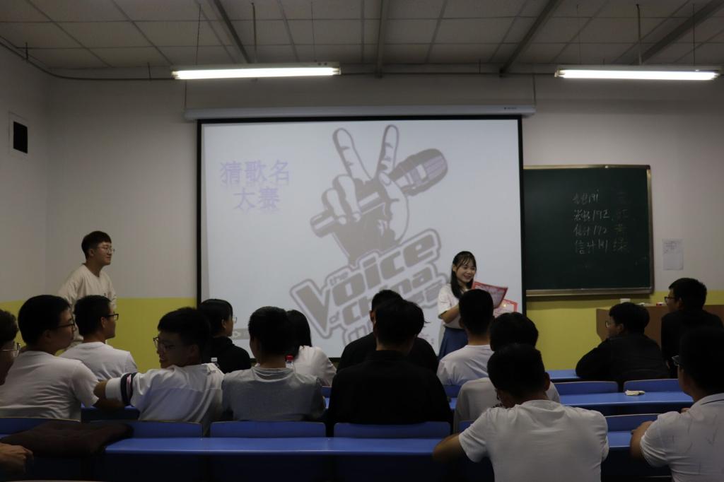 比赛开始前,主持人向各班参赛选手宣读比赛规则与奖品设置。本次比赛为积分制,分数最多的参赛班级将获得“中华小曲库”奖项。随后宣布比赛正式开始。首先,各班选出代表进行抢猜权比赛,比赛将各班分为红,蓝,黄,绿四个团队,由各参赛代表通过在电脑小游戏《反重力》的比拼中竞争猜歌资格,游戏排名第一的团队将进行猜歌,若猜歌成功,则为该团队计一分,猜歌失败不计分。全程比赛都沉浸在一片欢声笑语中。不管是小游戏还是猜歌环节,大家都拼尽全力向大家展现自己,在自己的青春岁月中留下浓墨重彩的一笔。在激烈精彩的比赛之后,主持人用精简的语音做了总结,随后为获奖班级颁奖。