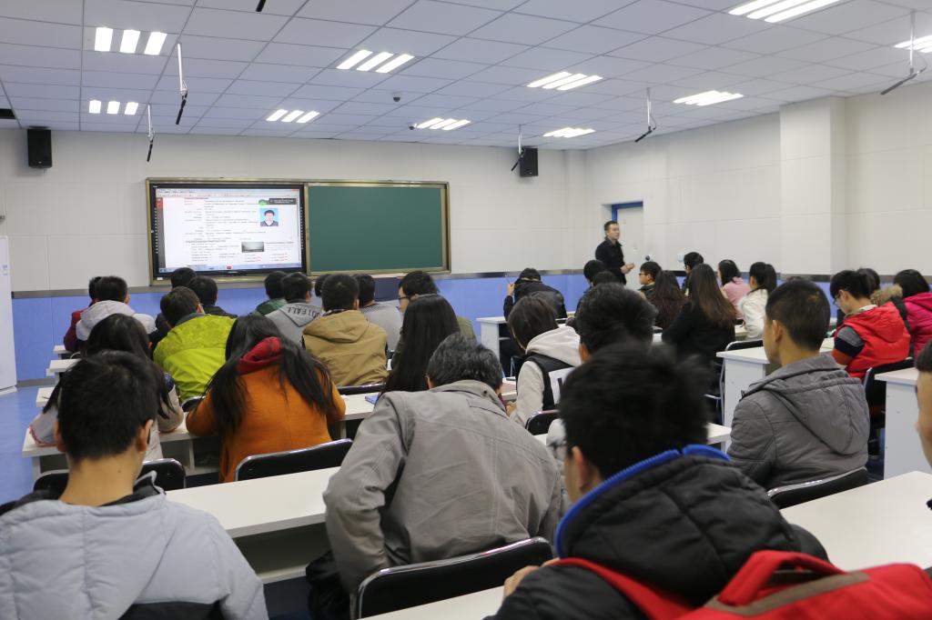 2015年12月4日于主教学楼录播室,英国上市公司365邀请留学美国的青年教师张睿,为2015级信息与计算科学专业的员工作全英文高等数学教学讲座。