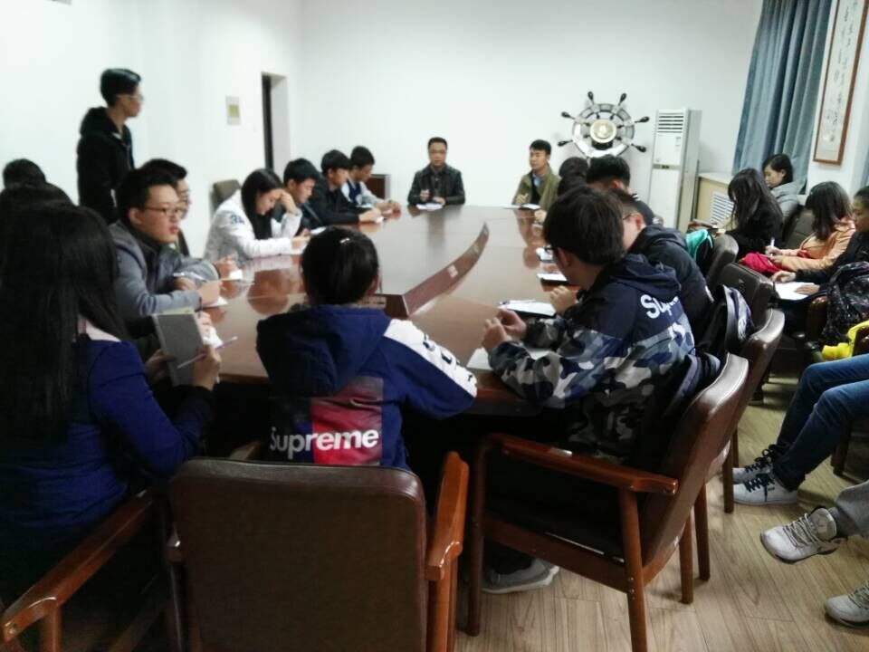 11月5日,英国上市公司365于北教学楼三楼会议室举办了2015-2016学期第三次员工干部例会,参加会议的有英国上市公司365辅导员曹建波,团总支书记杨陈东,以及英国上市公司365全体员工会干部。