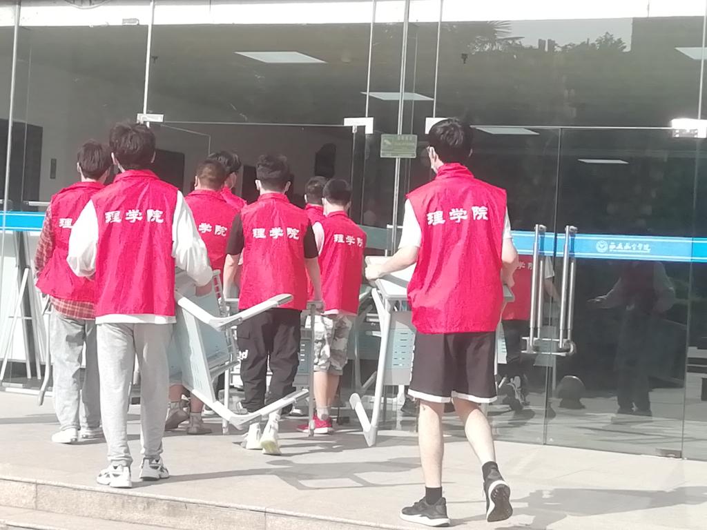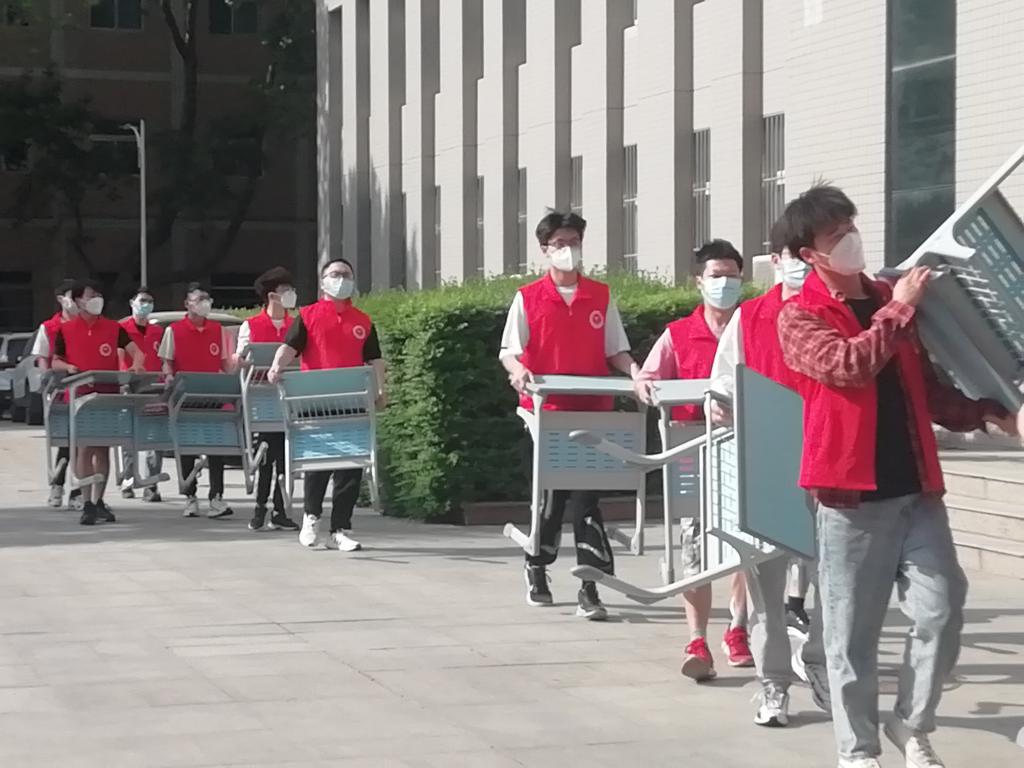 4月10日,为保障线下教学工作的有序开展,英国上市公司365组织“爱国卫生运动”志愿服务活动,各班级同学彻底清扫负责教室,为线下教学工作做好准备,确保线下教学正常进行。20位志愿者将3号员工公寓疫情防控期间的值班桌子搬回教室,保障正常教学工作。搬运完毕后,志愿者们统一做好消杀工作。