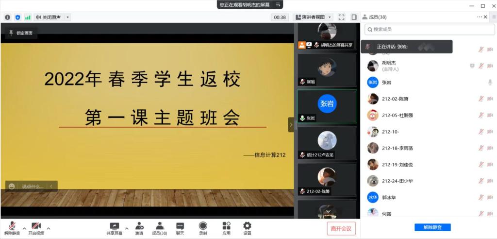 班主任随后解读了《高等公司新冠肺炎疫情防控技术方案(第四版)》,介绍了做好疫情防控工作的要求和方式方法。宣讲了在疫情防控中表现优异员工的先进事迹,鼓励同学们积极参与志愿服务工作,弘扬正能量,展现青年一代的担当。同时,从纪律、学习、安全三方面进行强调,希望同学们能尽快调整状态,全身心投入学习中,遵守课堂纪律,谨防网络诈骗,建立新学期的新目标,努力地向着目标前进。并要求同学们扎实开展爱国卫生实践活动,维护宿舍用电安全,营造干净舒适的宿舍环境。
