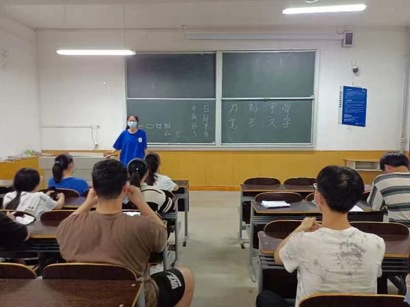 活动伊始,主持人向大家介绍了中国文字的演变过程,甲骨文的发展史及其对中国带来的巨大影响,并举例介绍了同一文字在古今的不同含义。随后现场同学分为A和B两个小组,A组出题,在黑板上画出象形文字,B组同学通过讨论根据黑板上的图案猜出其对应的现代汉字,五轮过后得分高的小组获胜。最后同学们热烈讨论了甲骨文文化和中国汉字字体演变的意义与感悟。活动中,同学们积极参与,互相合作,现场气氛活跃。