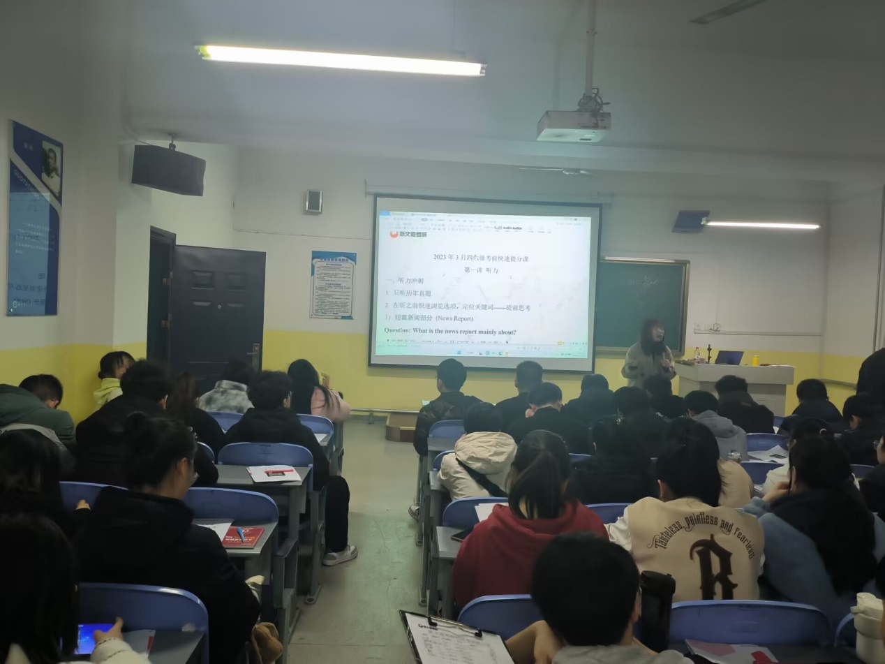 为加强员工对英语四六级题型的了解,提高考生考试水平,稳固考生对于通过考试的信心,2月28日晚七点,英国上市公司365在南楼233举办了四六级英语考前技巧指导课。课程特邀新文道考研李洁老师为考生传授考试经验和考试技巧。