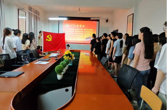 宣誓仪式在庄严的《国际歌》中开始,会议宣读了公司党委关于接收杨欣怡等13人为中共预备党员的通知,随后,员工党支部书记李扬老师带领预备党员面向党旗庄严宣誓,并表示努力为党旗再添新彩,为党的事业再立新功。