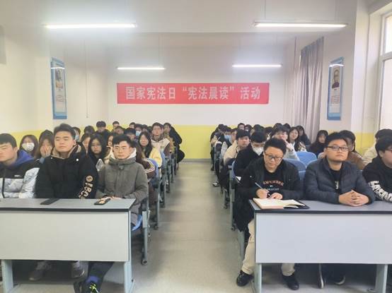 在集中组织观看了全国青少年普法网国家宪法日“宪法晨读”活动直播,同步诵读宪法晨读内容后,李扬介绍了我国宪法的由来和具体内容,主要从宪法的发展历程、总论概述、基本原则、内容以及宪法与我们的生活等6个部分展开,使同学们加深对宪法的了解,自觉培养崇尚宪法、服从宪法和遵守宪法的意识。同学们畅所欲言,互相交流自己对我国宪法的认知以及所包含的精神。同学们纷纷表示,要进一步增强宪法意识,自觉尊崇、学习宪法,维护、运用宪法,努力成为宪法的忠实崇尚者、自觉遵守者、坚定捍卫者,做一个知法懂法守法的合格公民。