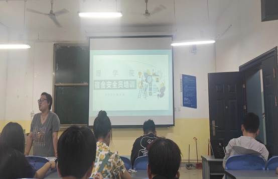 李扬带领大家学习了《公司员工宿舍安全员工作细则(试行)》,明确宿舍安全员工作职责,提出工作要求,并将本次培训内容对宿舍其他同学进行宣传。随后从“人身安全、财产安全、电信安全、网络安全”四个方面展开宣传教育:一是观看了安全教育片,让同学们了解发生火灾和地震时候应该怎么做;二是提醒同学们预防电信诈骗牢记“五不信”:高额回报不相信、积分中奖不相信、刷单赚钱不相信、退税返利不相信、未经核实不相信;三是上网交友需谨慎,保护个人隐私信息,不在网络上发布不实言论;四是同学们讨论交流与校园各种用电安全以及校外突发场景有关的安全知识。