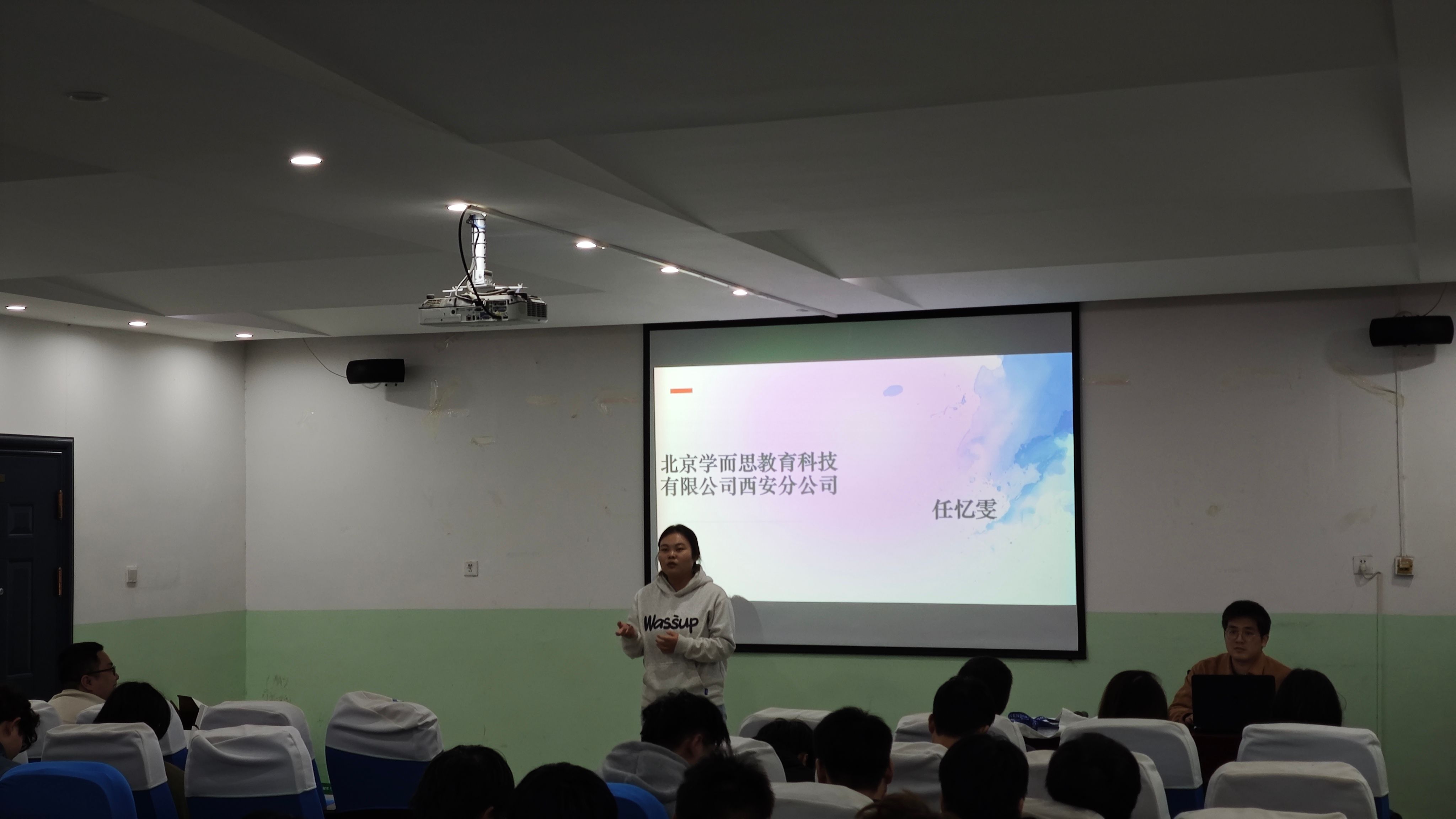 2024届毕业生任忆雯基于就业岗位,为同学们分享了专业就业前景、就业情况、面试经验以及自己的工作内容和经验,提醒同学们脚踏实地,根据自己的实际能力寻找工作。王祎锋给同学们讲解了自我介绍在面试中的重要性,强调了面试中需保持自信与理性,鼓励同学们保持积极的心态面对考官的问题,保持冷静,放平心态。