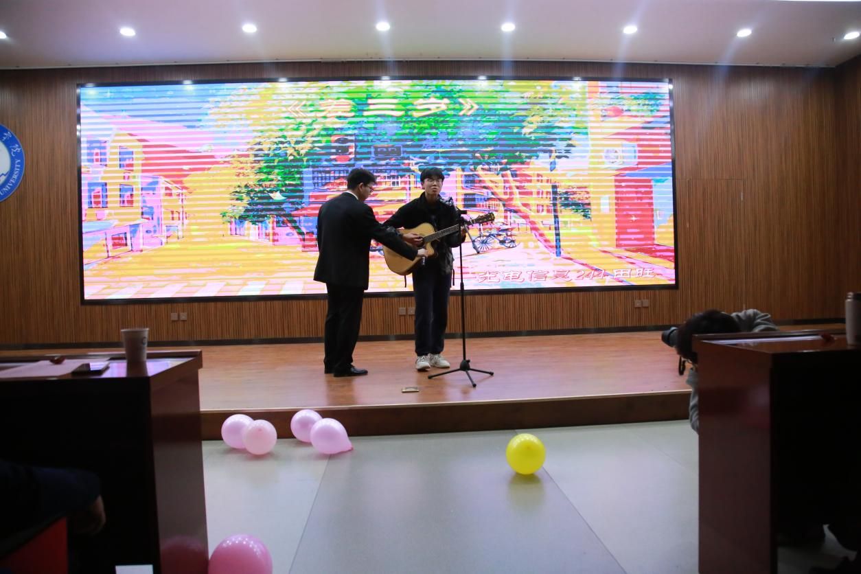 晚会最后,胡红亮书记和雒思程同学为我们带来《校园的早晨》。这首歌描绘了校园里宁静而美好的早晨,胡书记用他的歌声为我们的晚会画上了一个圆满的句号,也让我们珍惜在校园里度过的每一个美好的清晨。