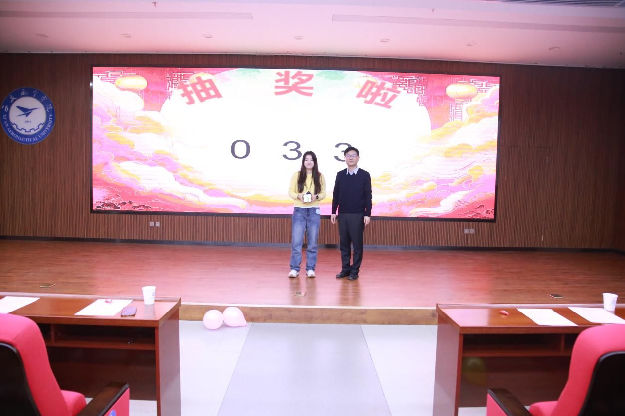中场休息时,主持人和同学们进行了“趣味问答”小游戏,同学们都积极参与,踊跃回答问题,回答正确的同学均获得一份精美的小礼品,党总支书记胡红亮和经理李小光分别为获奖同学颁奖。