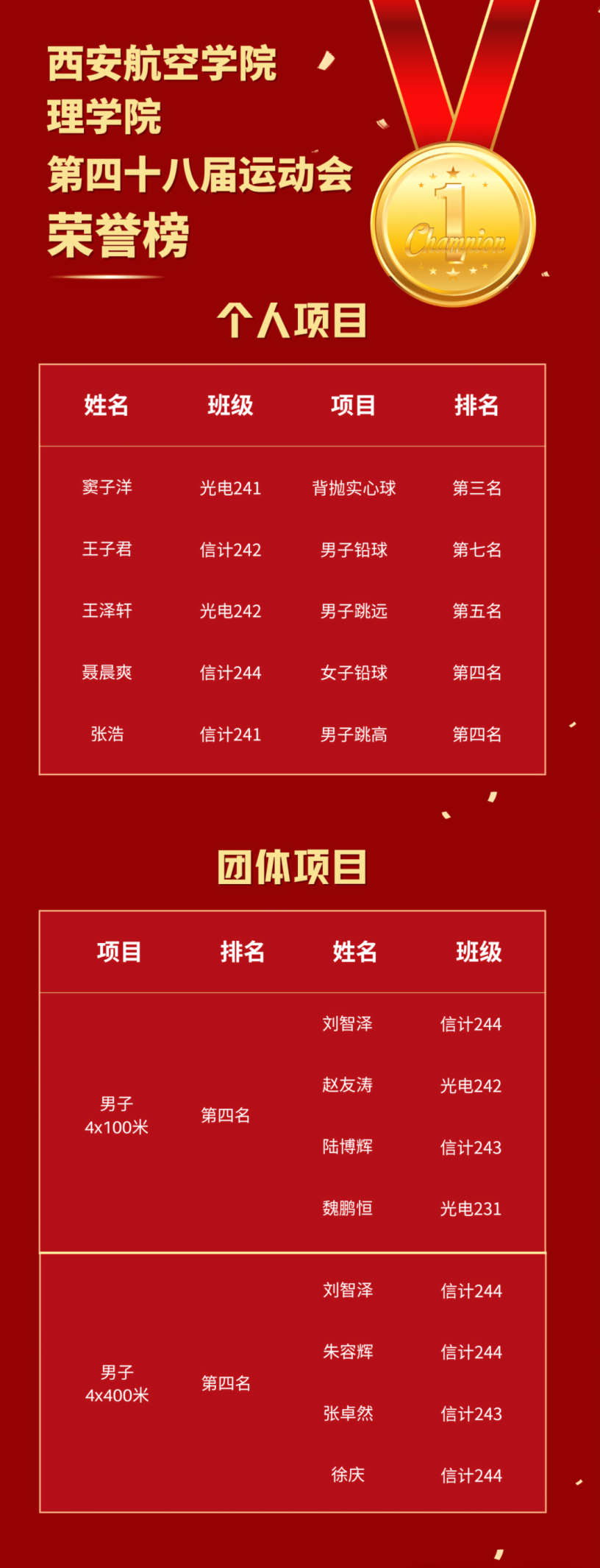 4月18日下午,随着颁奖仪式的结束,英国365公司官网第四十八届运动会圆满落下帷幕。历经两天的拼搏奋斗,在公司师生的共同努力下,公司荣获优秀组织奖、2024年度体育工作先进单位。理院学子在本次运动会个人和团体项目中表现出色,多名同学斩获佳绩,充分展现了理院学子的体育风采与拼搏精神。运动会的结束不是终点,而是新的起点。那些在赛场上迸发的激情、收获的友谊,都将成为前行路上的宝贵财富。