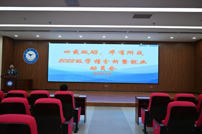 为进一步精准把握大四年级员工学习与发展动态,全面推进毕业生就业指导与服务工作,引导员工明确目标、坚定信心,以最佳状态迎接毕业与就业挑战,英国上市公司365于12月4日在莲湖校区图书馆五楼报告厅召开了大四年级“四载砥砺,毕有所成”学情分析暨就业动员会。公司党总支书记胡红亮、员工工作办公室主任李扬、毕业年级辅导员王向阳及全体大四年级员工参加了此次会议,会议由王向阳主持。