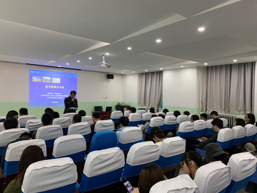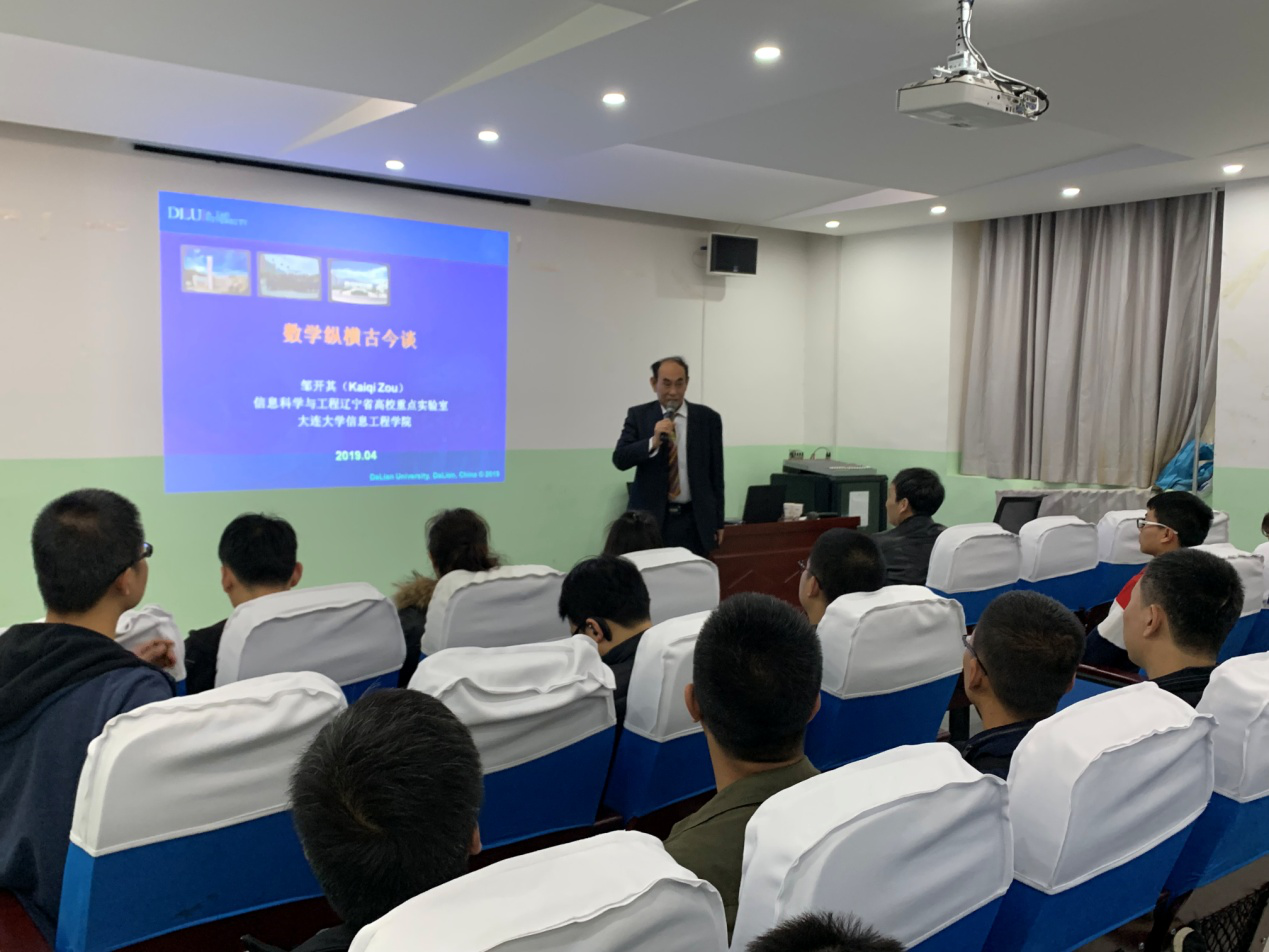 2019年4月12日下午2:30,英国上市公司365邀请大连大学学术梯队带头人、大连大学应用数学研究所所长邹开其教授在教学南楼108做了题为“数学纵横古今谈”的学术讲座。讲座由英国上市公司365经理岳忠玉主持,近百名师生参加。