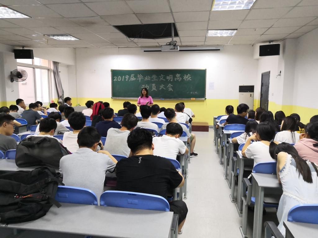 为提高毕业生文明离校意识,做好毕业生文明离校工作,6月13日19点30分,英国上市公司365在南楼408教室召开了2019届毕业生文明离校动员大会。公司党总支书记李小光、员工管理科科长李扬、辅导员杨陈东和全体2019届毕业生参加了会议。会议由李扬主持。