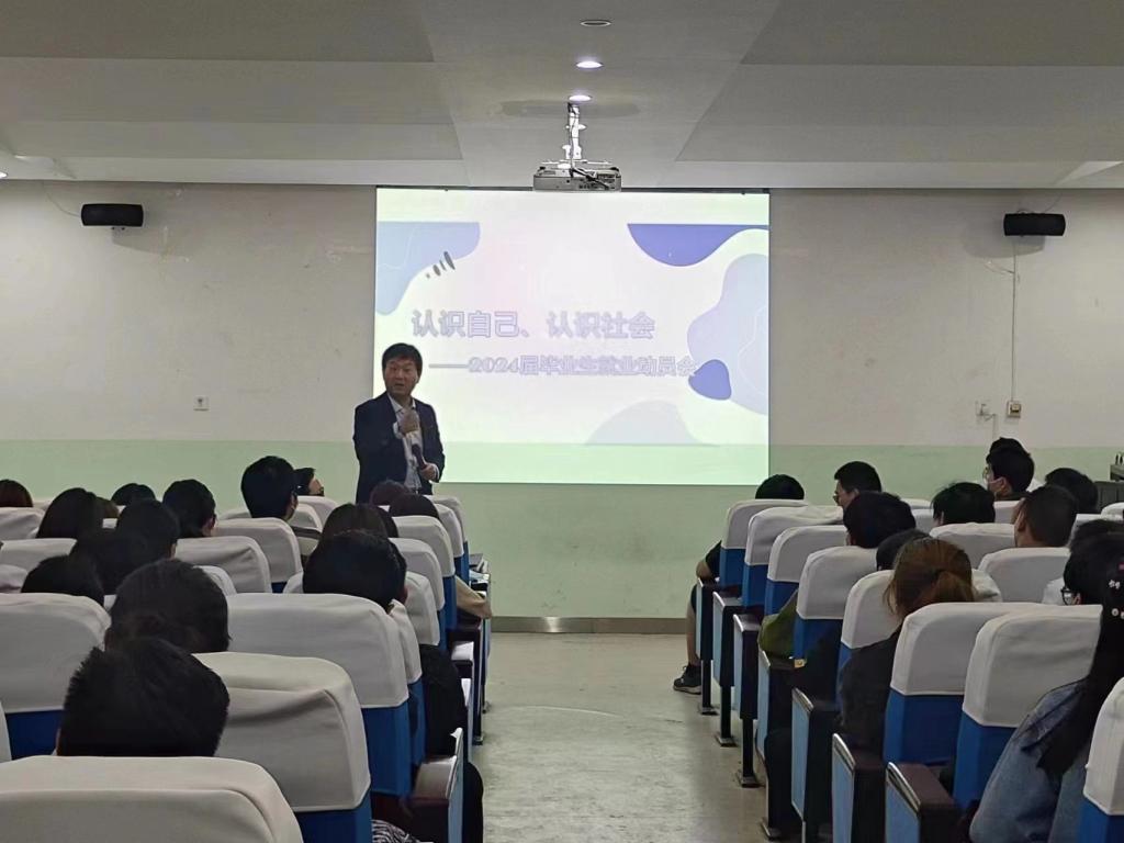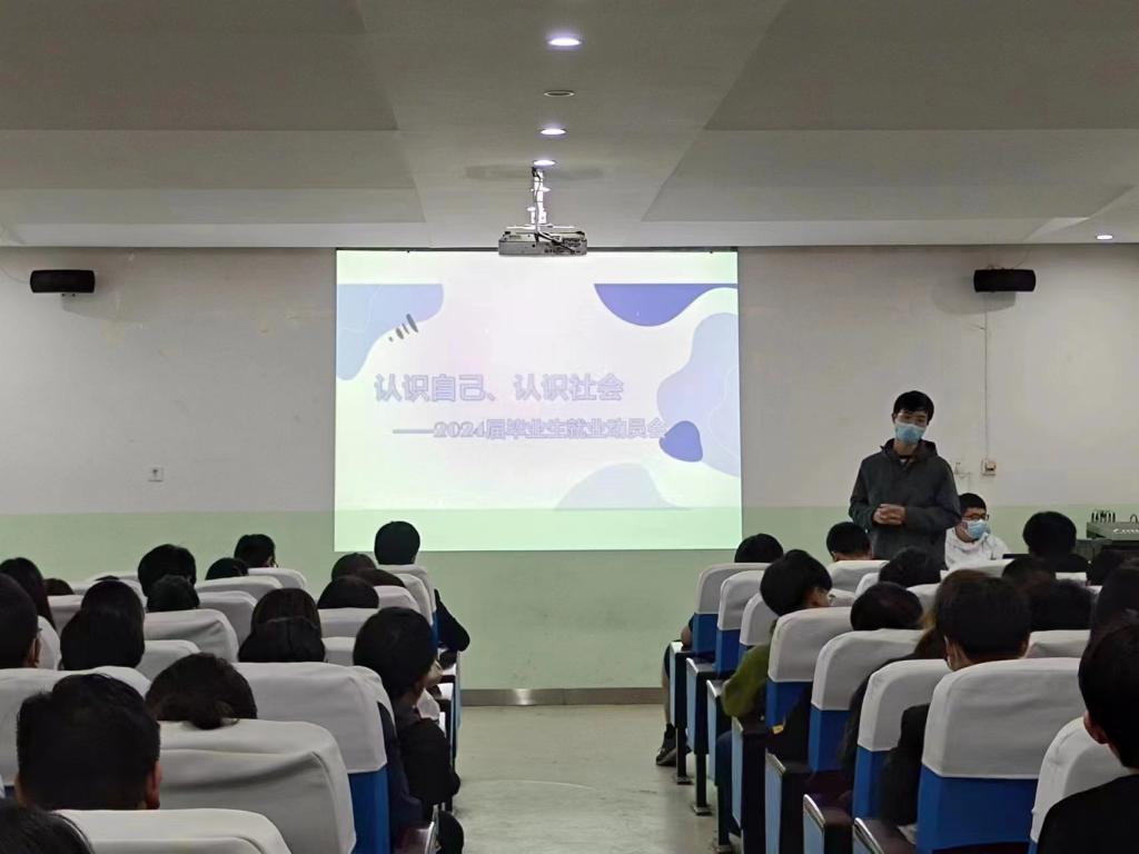 为持续做好公司毕业生就业工作,帮助大三员工做好职业规划,明确学习目标,6月16日,英国上市公司365在莲湖校区南楼108教室召开了“认识自己、认识社会”2024届毕业生就业动员会。公司党总支书记胡红亮、员工管理科科长李扬、年级辅导员张岩及大三全体员工参加。