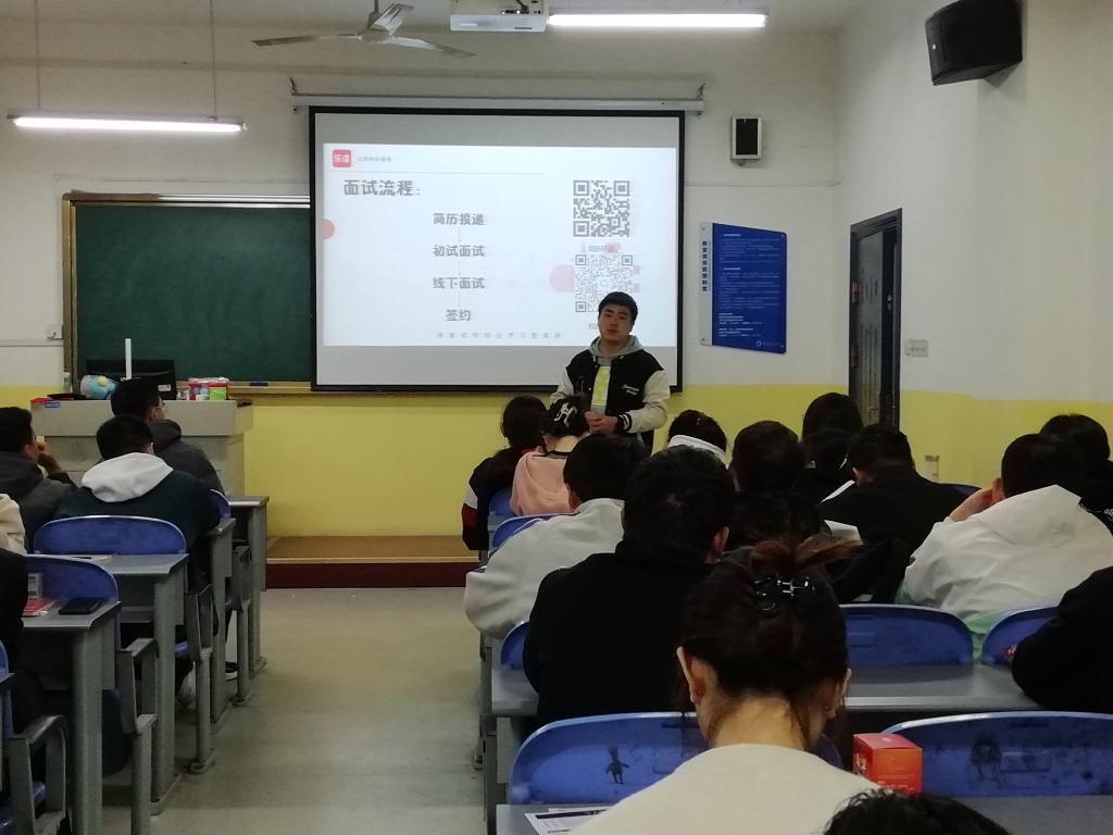 乐读线上教育是一家经教育主管部门批准成立的非营利性中小学在线学科教育机构,提供学科类课程内容与服务,由原学而思培优团队打造,在行业内具有很强影响力。宣讲会上,主讲人用视频和PPT为毕业生进行了详细的公司介绍,清晰明了地讲解了公司的岗位需求及面试流程。已在公司任职的本校学长结合自己的成长经历,对同学们的疑问做出了解答。宣讲会中,同学们踊跃回答主讲人提出的问题,并积极互动,展现出了积极的就业态度。会后,公司现场组织了招聘初试,同学们积极踊跃参加。