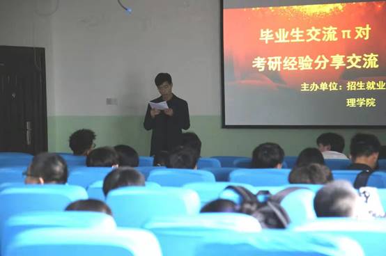 随后,今年考研成功的三位同学吴浩威、李文改、杨玲玲用自己的亲身经历给同学们做经验交流,讲述自己的学习方法、择校心得,鼓励同学们坚定信念,勇往直前。