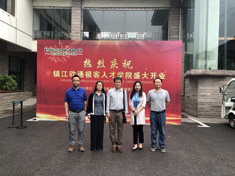 2018年5月26日,英国上市公司365经理、党总支书记岳忠玉,副经理丁琦,教学秘书曹建波受邀参加了由镇江高新区管理委员会主办的镇江软通极客人才公司启动仪式,参加此次仪式的有副市长、丹阳市委书记陈可可、镇江市委常委、镇江高新区常工委书记詹立风、软通动力集团高副总裁、江苏大区总裁张忠阳、镇江市相关领导以及来自全国50余所院校从事IT领域教学与研究的经理和学者出席会议启动仪式由镇江高新区党工委副书记、管委会主任严竹波主持。