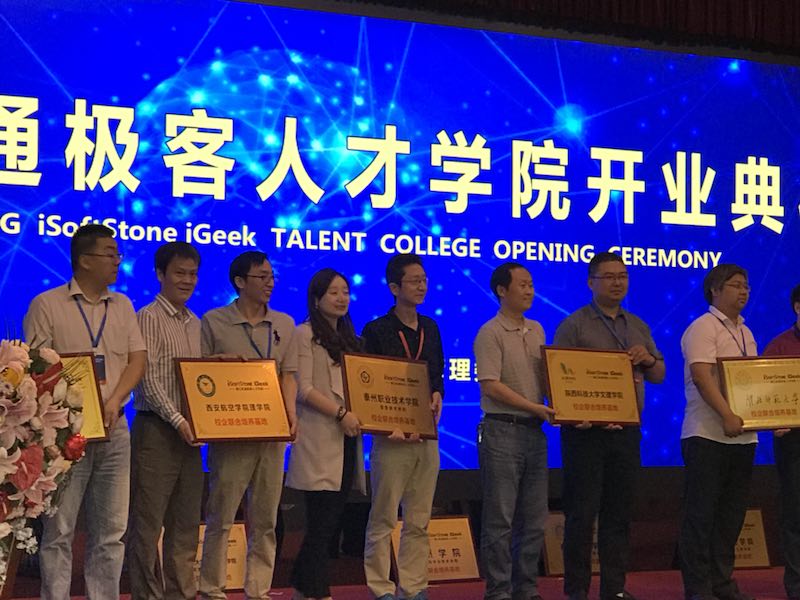 软通极客人才公司是软通动力信息技术(集团)旗下的中高端IT人才培训机构,秉承“合作、共赢、创新、成就”的品牌精神,为镇江软件及服务外包、互联网、人工智能、智慧城市等产业发展提供人才支撑。启动仪式上软通极客人才公司代表上台接受了英国上市公司365、常熟理工公司数学与统计公司、淮阴工公司数英国上市公司365等37家公司代表的“校企合作培训基地”授牌。