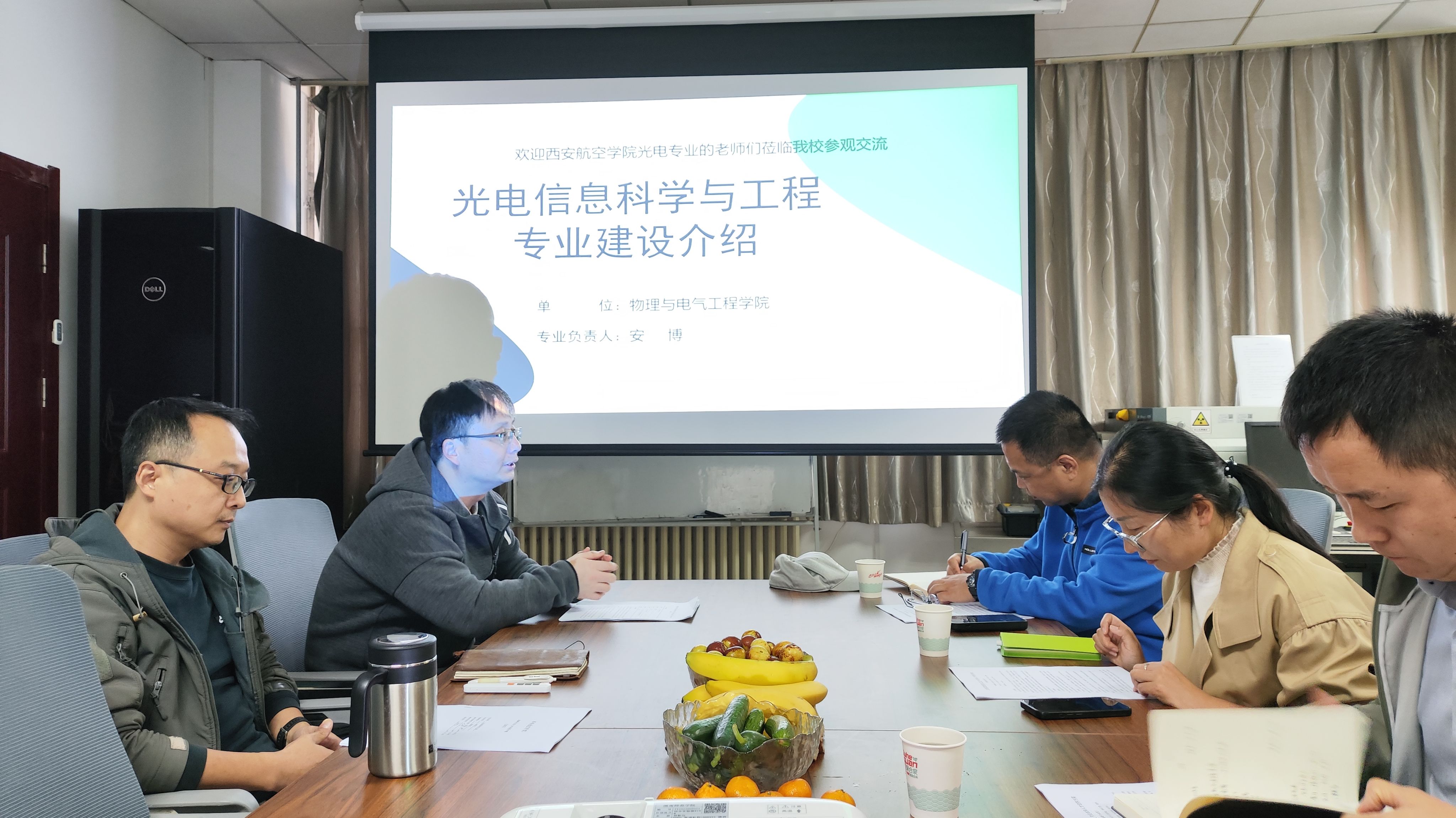 何冰介绍了渭南师范公司物理与电气工程公司在学科发展和人才培养方面的宝贵经验,安博详细介绍了光电信息科学与工程专业在团队队伍建设、学科竞赛、课程设置、教学方法等方面取得的成绩和方法。公司调研组结合本公司的实际情况,在实验室建设、学科发展方向等方面进行了深入研讨,并探讨了未来合作的可能性。